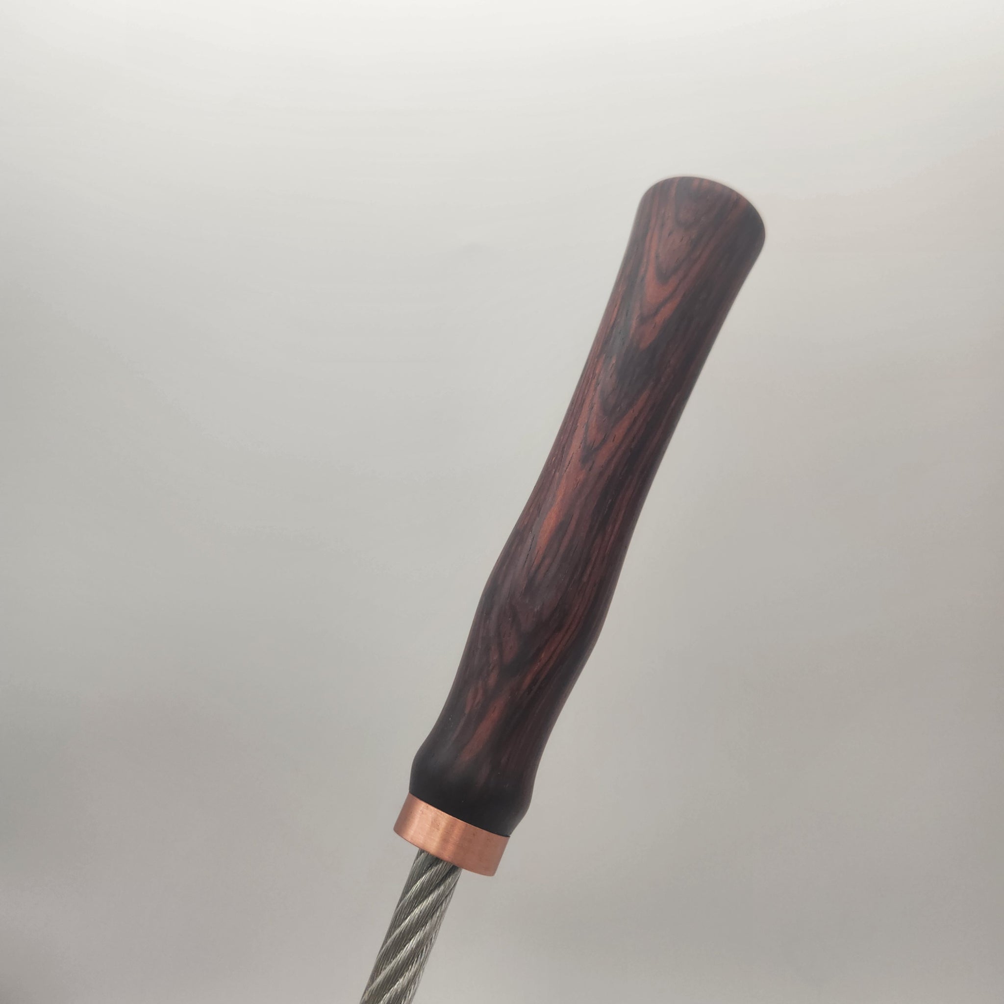 Cable whip in rosewood. Rosewood handle with copper ferrule. 3/8" diameter vinyl coated cable, 17" long with permanently attached rubber tip.